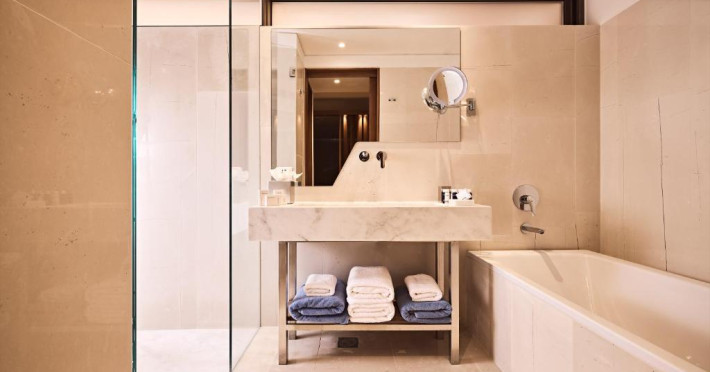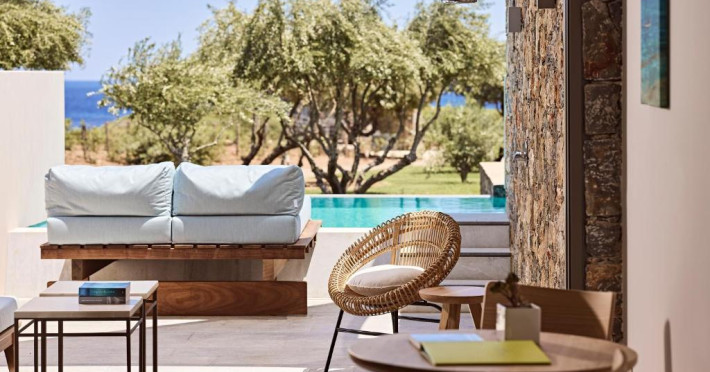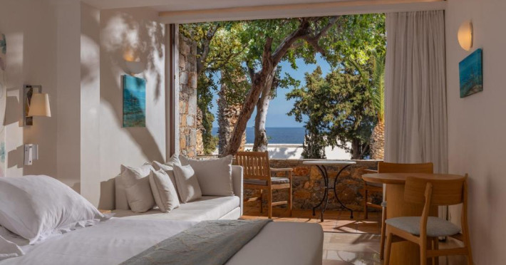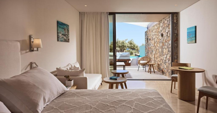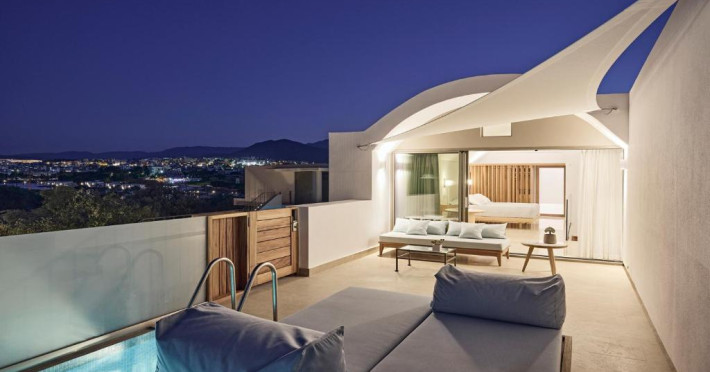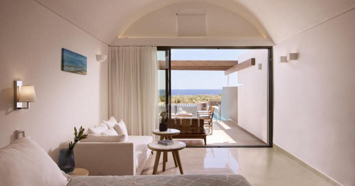 Unitățile de cazare sunt spațioase și au terasă sau balcon cu vedere panoramică la mare. Acestea includ WiFi gratuit, televizor LCD cu canale prin satelit, DVD/CD player și baie elegantă din marmură. Unele suite oferă cadă tip spa și piscină privată.