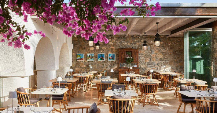 In fiecare zi este servit un mic dejun amplu, care include mancăruri calde și reci și specialități din Creta. Proprietatea are 5 restaurante care servesc mancăruri variate, inclusiv orientale, mediteraneene și cretane. De asemenea, există un cocktail bar, un bar la piscină și un bar pe plajă.