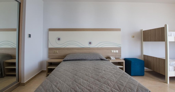 În camere există baie cu cadă sau duș prevăzută cu foehn. Camerele de la Stamatia Hotel sunt dotate cu aer condiționat, Tv cu canale prin satelit și seif. Oaspeții au la dispoziție serviciul de room service pentru a servi masa sau diverse băuturi. Unele camere au balcon cu vedere la mare, unde oaspeții pot admira apusul sau răsăritul soarelui.