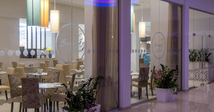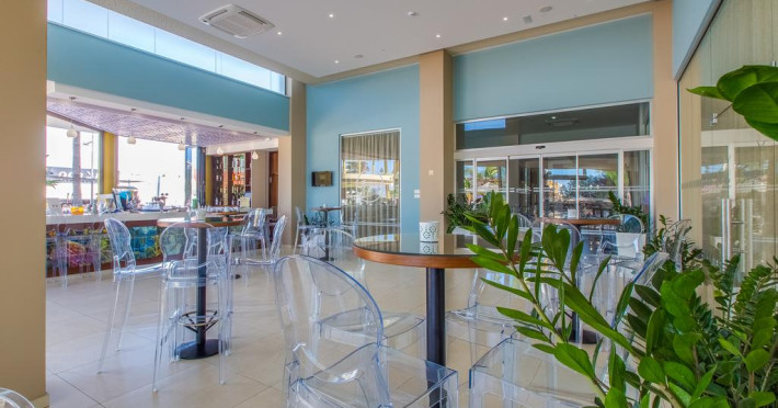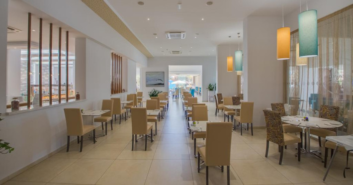 La Stamatia Hotel oaspeții au la dispoziție un restaurant care servește mâncare în stil bufet. Preparate din bucătăria grecească așteaptă să fie degustate în fiecare zi. Masa poate fi servită atât în interior, cît si în aer liber, pe terasă, în funcție de vreme. Oaspeţii pot avea diverse băuturi răcoritoare sau alcoolice la bar. În cadrul proprietății există și un snack bar care servește băuturi și gustări.