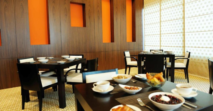 Room service, complimentary continental breakfast and Social dinner from Sunday to Wednesday are available to all guests. Facilities include a fitness room and a 24/7 convenience store.