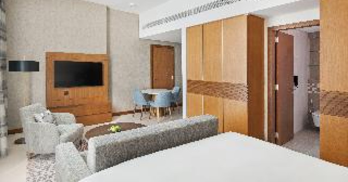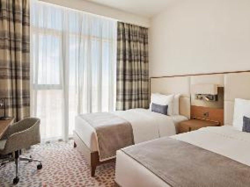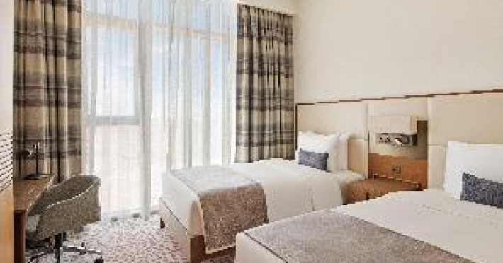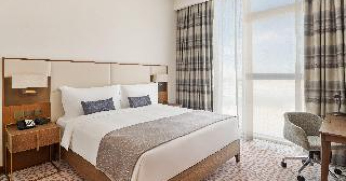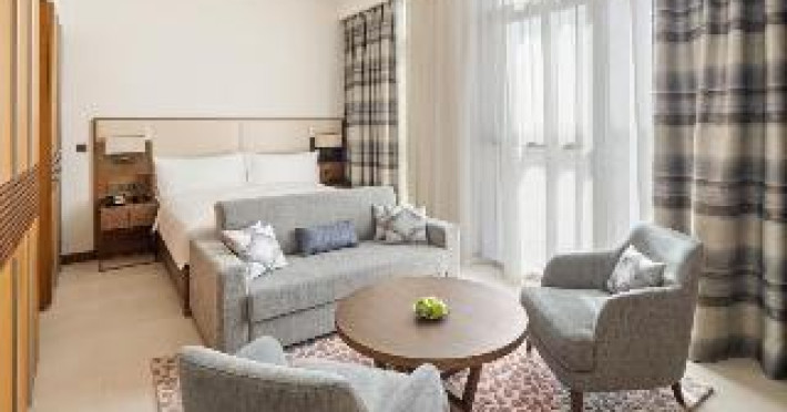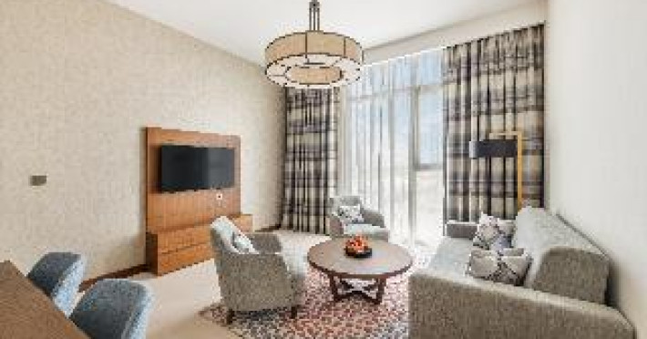 Staybridge Suites, a residential-style hotel near Dubai's burgeoning business district of Dubai South, offers an ideal extended-stay experience for families, business, and leisure travelers. Located conveniently next to Dubai Parks & Resorts and Dubai Al-Maktoum Airport, the hotel features 262 spacious and chic studios, one-, and two-bedroom suites. Each unit combines modern ambience with comfort and convenience, including a fully equipped kitchen and ample living and workspaces, perfect for entertaining, preparing meals, or catching up on work. Interconnecting rooms and customizable options cater to various needs. Guests can enjoy a complimentary breakfast and a vast range of hotel services and amenities, including a spectacular outdoor pool, a cutting-edge health club, and exceptional dining options serving international cuisine. The Den provides a perfect setting for informal business meetings.Staybridge Suites, a residential-style hotel near Dubai's burgeoning business district of Dubai South, offers an ideal extended-stay experience for families, business, and leisure travelers. Located conveniently next to Dubai Parks & Resorts and Dubai Al-Maktoum Airport, the hotel features 262 spacious and chic studios, one-, and two-bedroom suites. Each unit combines modern ambience with comfort and convenience, including a fully equipped kitchen and ample living and workspaces, perfect for entertaining, preparing meals, or catching up on work. Interconnecting rooms and customizable options cater to various needs. Guests can enjoy a complimentary breakfast and a vast range of hotel services and amenities, including a spectacular outdoor pool, a cutting-edge health club, and exceptional dining options serving international cuisine. The Den provides a perfect setting for informal business meetings.