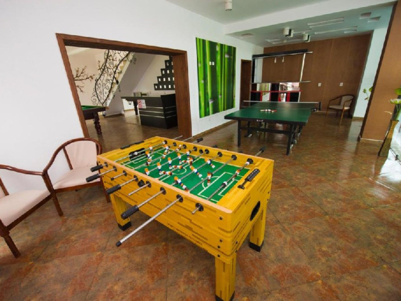 - 3 pensiuni ( cu cca. 80 de locuri )un restaurant cu cca. 220 locuri + terasa, o noua sala multifunctionala cu peste 200 locuri in care se organizeaza majoritatea evenimentelor , piscina descoperita, piscina acoperita cu Jacuzzi, billiard, tenis de masa, fitness, camera de joaca pentru copii, sauna, masaj, teren de sport multifunctional, minigolf, sah de gradina, parcare pazita, etc.
