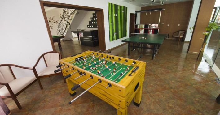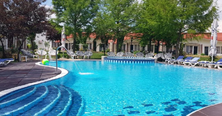 Sauna si jacuzzi, piscina in aer liber + piscina pentru copii - incalzite natural, internet wirelles, tenis masa, biliard, teren de sport multifunctional (baschet, minifotbal, volei, tenis), minigolf, sah de gradina, spatiu de joaca pentru copii.Parcare pazita.