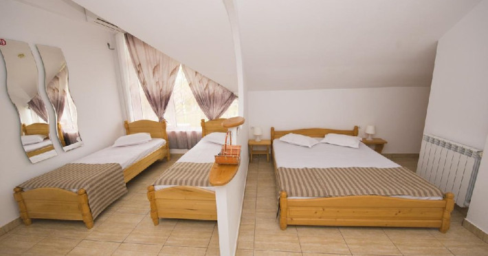 STEAUA APELOR 2- PRISLAVA (3 margarete) - cu o capacitate de 23 locuri in 5 duplexuri fara balcon, fiecare fiind constituit dintr-o camera matrimoniala si una cu 2 paturi unite, fiecare cu baie proprie, au o camera cu fereastra obisnuita si cealalta cu fereastra tip VELUX, toate cu usa de comunicare intre ele + 1 tripla cu 1 pat matrimonial si 1 pat de o persoana