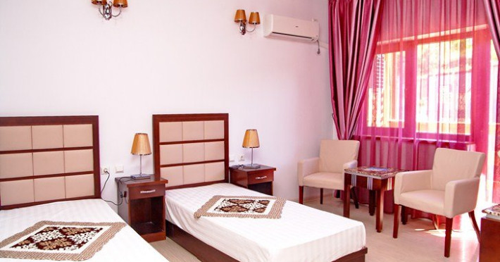 Toate camerele beneficiaza de grup sanitar propriu cu dus, aer conditionat, TV, WiFi. Diferentele intre camere sunt date de pozitionarea lor in vile si de calitatea mobilierului.