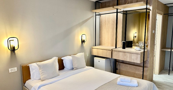 Facilitati camera: aer conditionat, baie cu dus, minibar, seif, telefon, fier de calcat, fierbator pentru apa/filtru de cafea