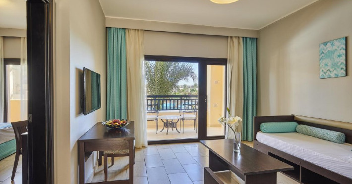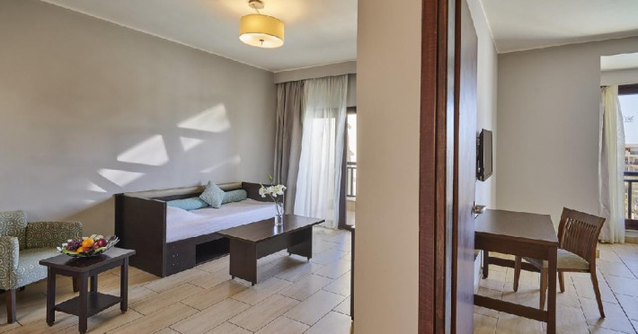 Family Suite au o suprafata de 55 mp si sunt cu vedere la piscina, mare sau faleza. Capacitatea maxima a camerei este de 4 persoane.