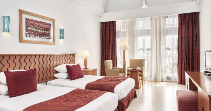 In the vicinity of the hotels own beach is located the 5 star hotel Steigenberger Golf Resort El Gouna. The old town is around 3 km away. There is a shuttle between the hotel and the airport (for a fee). The beach is patrolled by a lifeguard. Here, there are cushions, sun umbrellas and beach towels available. Cold drinks are served at the beach bar. To reach the beach a shuttle is provided. The air-conditioned hotel is equipped with a 24h reception (check-in is possible around the clock), a lobby bar, internet access, a shop, cash machine, a hairdresser, a first aid kit as well as parking spaces. In the outdoor area of the property you will find a seasonally heated pool (open all year), where sun loungers, sun umbrellas and pool towels are available for free. There is also a separate childrens pool. Furthermore, outside you can find a terrace. You can store your valuables in the safe, and your luggage in the hotels storage room. For very young guests, kids chairs can be provided). There is also a laundry service available at an additional cost to customers. For your comfort, in addition to the concierge service the hotel page will ensure you are looked after. If necessary, you can contact the medical centre at any time (for a fee). The energy supply is 220 Volts. For conventions and other business meetings, the hotel offers a business centre as well as a conference area (extra fee) with scanner. If you want to explore the holiday region, you can use the car rental service close to the hotel (extra fee). In addition, the hotel sells tickets excursions. Catering As catering services the hotel offers all-inclusive. Breakfast is offered continental or from the buffet. Enjoy your lunch from the buffet or as a set meal. Dinner is also served as a buffet, as a set meal or à la carte. When booking all-inclusive, breakfast, lunch and dinner are included. As part of the all-inclusive service, international alcoholic beverages (24h) are available around the clock and at no extra charge. For the meals, there are a buffet restaurant (calorie-reduced, gluten-free and vegetarian dishes) and a 24h snackbar as well as the pool bar. For dinner, guests are asked to wear appropriate clothing in the restaurant. Distances * Discotheque: approx. 1 km * Airport: approx. 35 km * Bus stop: approx. 3 km * Hospital: approx. 3 km * Dive shop: approx. 3 km Sports amp; Leisure To keep your fitness up on holiday, there is a gym for guests to use. The 9- and 18-hole golf course (fees apply) offers optimal conditions for all golfing fans, and for your convenience also provides facilities such as a shuttle service. The necessary equipment you can either rent or buy at the nearby golf shop. After a round of golf you can enjoy a cool drink in the clubhouse. During your holiday you can also take part in aerobics courses. There is also the option to play billiards. With beach volleyball, darts and table tennis various other sports offer a lot of variety on holiday. Also volleyball as well as boccia are offered as further leisure activities. A sauna awaits you in the spa area. The hotel also offers massages (extra fee) and beauty treatments. Let yourself be pampered in the Hamam. For child care there is a babysitter service (extra fee) in your place of accommodation. In terms of adult entertainment, evening shows and live music are presented. Additional information Check-in is possible from 15 hrs, check-out until 12 hrs.Datorita dinamicitatii domeniului disponibilitatea ofertelor se modifica de la un moment la altul. De aceea ofertele sunt valabile in limita locurilor disponibile. Agentia nu este responsabila pentru eventualele neconcordante care pot aparea intre informatiile privind tarifele si alte detalii din site si informatiile primite in agentie. In aceste cazuri vor avea prioritate, intotdeauna, informatiile primite in agentie.