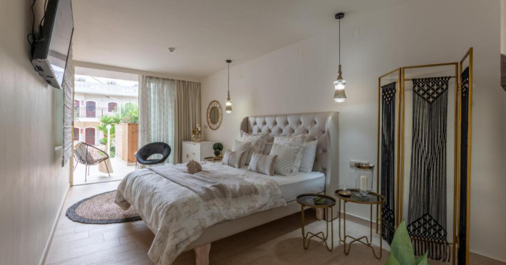 Stelios Gardens are acces la o plajă publică. Pe plajă există șezlonguri și umbrele de plajă contra cost.
