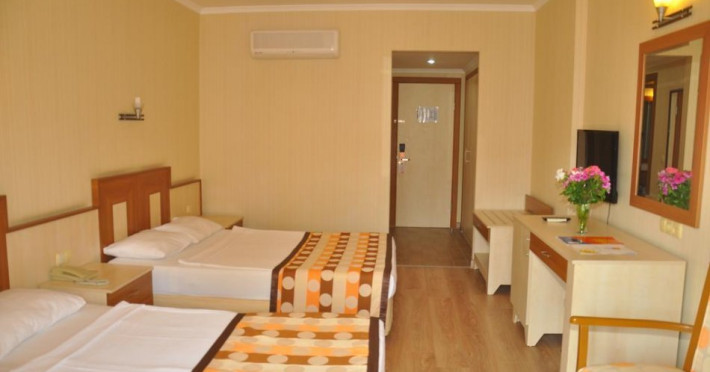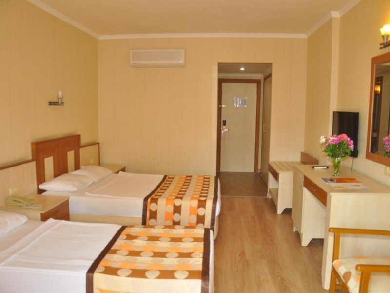 Localizare: Hotelul este situat pe plaja privata cu nisip si pietris, la aproximativ 90 km fata de Aeroportul International Antalya.Dotari camere: Hotelul dispune de un total de 247 de camera, toate dotate cu aer conditionat, baie privata cu cada, balcon, parchet, minibar ( doar apa), Wi-fi, pat matrimonial sau paturi twin.