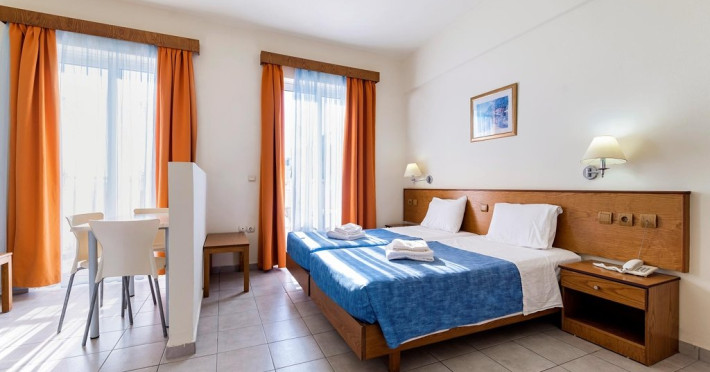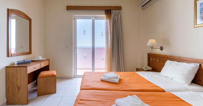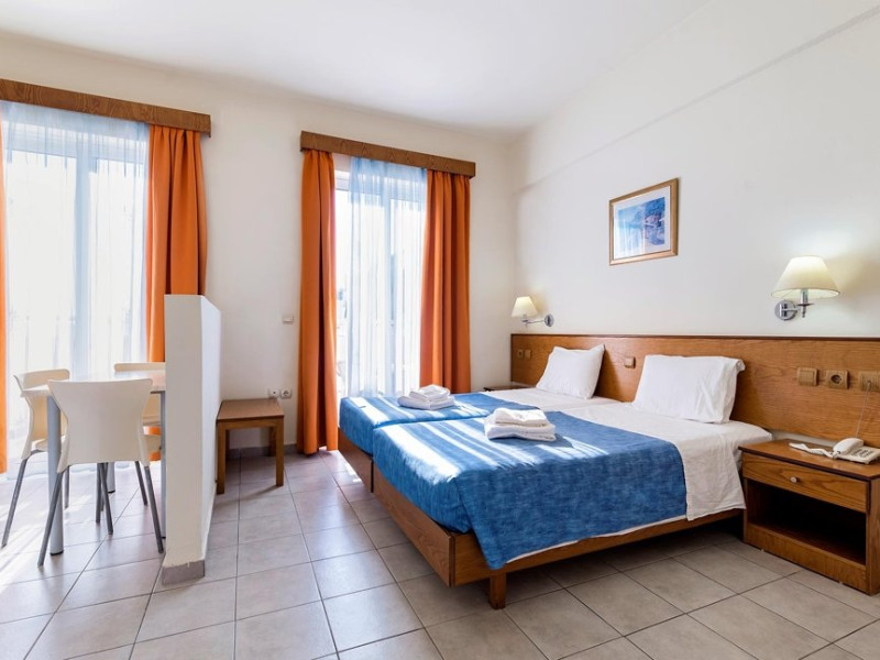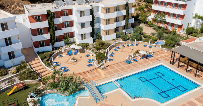 Localizare: la aproximativ 500 m de plaja din Pefkos si 55 km de aeroport.Dotari camere: aer conditionat (contra cost), acces internet WiFi, seif (contra cost), televizor, mini bucatarie (mini frigider, cuptor cu microunde, plita, toaster, fierbator de apa), uscator de par, balcon/terasa.