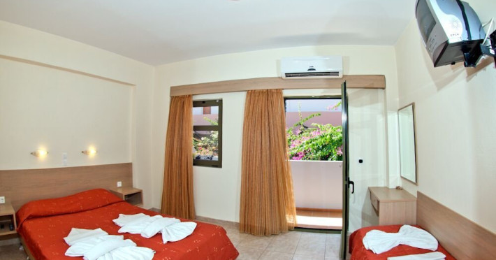 Localizare: la aproximativ 70 m de plaja din Adelianos Kampos, la 6 km de Rethymno si 70 km de aeroportul din Chania.Dotari camere: Camerele sunt dotate cu aer conditionat, televizor, frigider.