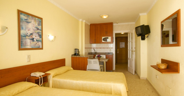 Facilitati studio: pat matrimonial sau twin, baie proprie, seif (contra cost), aer conditionat, telefon, uscator de par, TV prin satelit, chicineta, frigider, Wi-Fi.