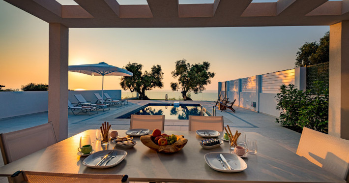 Stelle Mare is an impressively designed villa that combines the simplicity of space, with the effortless feeling of serenity and promises a comfortable and luxurious stay to the visitors. The unique location of the villa on top of a hill, offers unparalleled panoramic view of the island, towards the port and the town of Zakynthos. The villa consists of a living room with BoConcept furniture, a bedroom with COCO-MATs natural sleep systems and bedding, a fully equipped kitchen and two bathrooms. The soft touch of high quality Guy Laroche linen complete the feeling of an unforgettable stay experience.Datorita dinamicitatii domeniului disponibilitatea ofertelor se modifica de la un moment la altul. De aceea ofertele sunt valabile in limita locurilor disponibile. Agentia nu este responsabila pentru eventualele neconcordante care pot aparea intre informatiile privind tarifele si alte detalii din site si informatiile primite in agentie. In aceste cazuri vor avea prioritate, intotdeauna, informatiile primite in agentie.