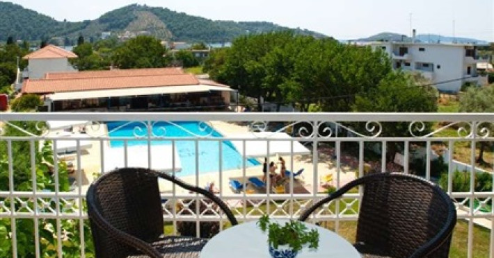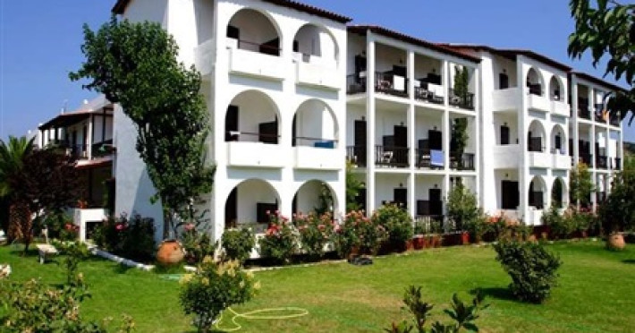 Hotelul este situat in capitala insulei, in Skiathos Town, la aproximativ 10 minute de mers pe jos fata de port si de plaja. La mai putin de 100 de metri de hotel se afla o statie de autobuz. Manastirea Panagia Kounistra se afla la 10 km departare, iar celebra plaja Koukounaries se găseşte tot la 10 km de hotel.