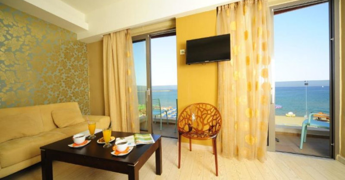 Steris Elegant Beach Hotel & Apartments este amplasat pe faleza orașului Rethymno, oferind o locație deosebită în imediata apropiere a mării. Complexul găzduiește 32 de studiouri, apartamente și apartamente elegante, fiecare decorată individual, garantând o experiență de cazare relaxantă, confortabilă și plină de bucurie pe durata șederii dumneavoastră.Descriere hotel