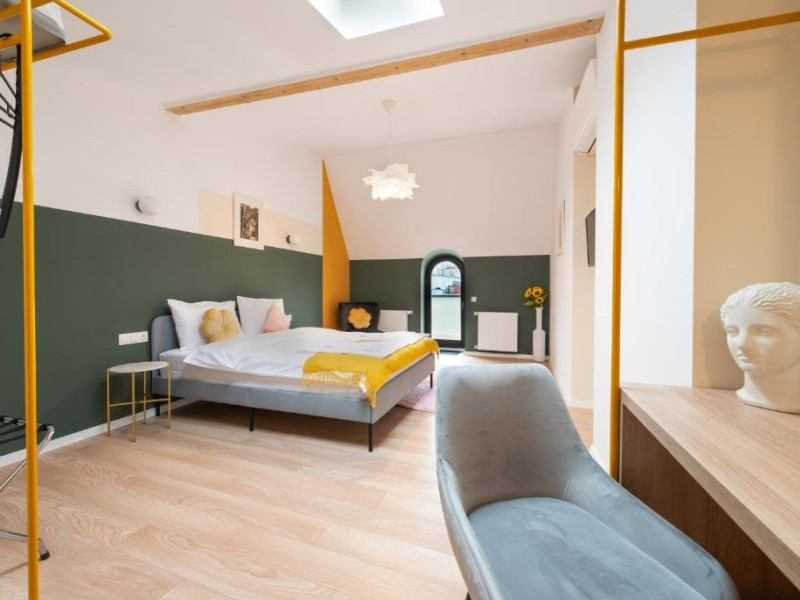 Ideala pentru un cuplu ce doreste sa traiasca cateva momente unice. Camera este dotata cu o baie de tip open space, cu cada pozitionata in centru.