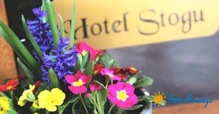Hotelul este situat in centrul Statiunii Baile Olanesti la 18 km de Ramnicu Valcea, pe malul raului Olanesti avand in imediata apropiere Parcul Mihai Eminescu. Hotelul este construit modern, fiind amplasat in vecinatatea bazei noi de tratament, a strandului si a parcarii supraetajate (aceste proiecte apartin Primariei Statiunii Olanesti, proiecte cu fonduri europene in curs de finalizare).Hotel Stogu a fost dat in folosinta in anul 2003 .Finisarile si dotarile sunt de calitate , camerele sunt spatioase si dispun de balcon.
