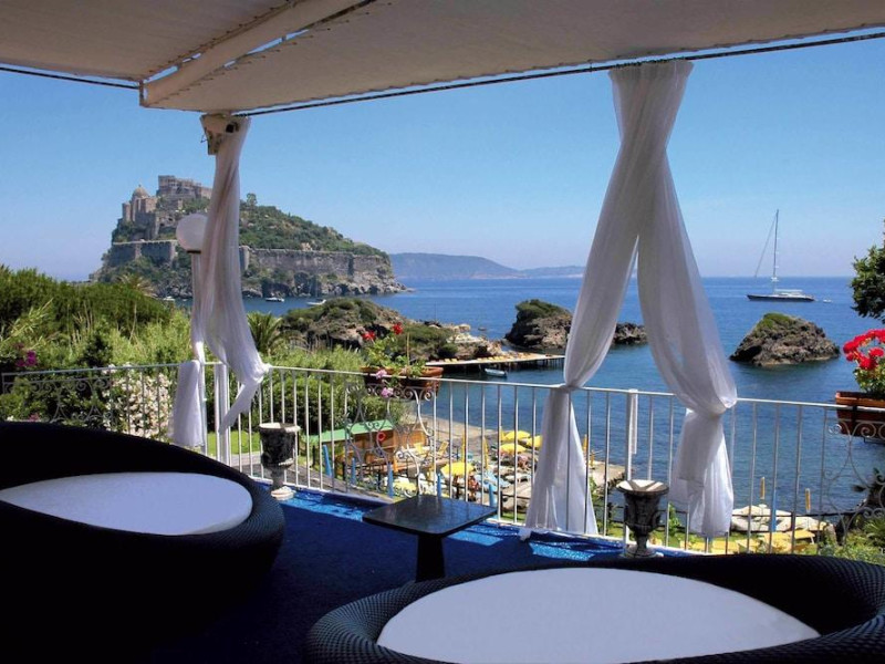 One of the most exclusive places on the entire island of Ischia awaits you for a holiday in the wonders of nature that surrounds us, without sacrificing the convenience of a central location. The Hotel Delfini is set between the green and the sea, overlooking the bay of Cartaromana, with its famous thermal pools, the rocks of SantAnna, the sixteenth-century Torre di Guevara and the ancient manor of the Aragonese Castle.A world of luxury and elegance, enveloping and relaxing atmospheres, among precious furniture, fine fabrics and artistic ceramics that will make you feel perfectly in harmony and relaxed.Continental breakfast with fresh sweet and savoury pastries.Check-in from 2 p.m. Small pets are allowed with a daily supplement.Parking available for a fee.Datorita dinamicitatii domeniului disponibilitatea ofertelor se modifica de la un moment la altul. De aceea ofertele sunt valabile in limita locurilor disponibile. Agentia nu este responsabila pentru eventualele neconcordante care pot aparea intre informatiile privind tarifele si alte detalii din site si informatiile primite in agentie. In aceste cazuri vor avea prioritate, intotdeauna, informatiile primite in agentie.