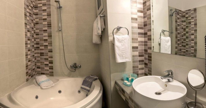 Locatie: Hotelul Strass din Paralia Katerini, este combinatia perfecta intre clasic si modern, intr-un mediu prietenos, ce ofera servicii de calitate si cazare in camere mobilate modern, la cele mai inalte standarde.Facilitati camere: Hotelul dispune de 26 camere spatioase ce au fost decorate de celebrul Jean, designer francez. Hotelul dispune de camere single, duble, triple, family room (family suite), executive suite si deluxe suite.