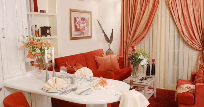 Executive suite este un apartament format din living si 2 dormitoare. In living se afla o canapea. Intre living si dormitorul 1 nu este usa despetritoare. Cel de-al doilea dormitor este despartit de celelalte camere prin usa.