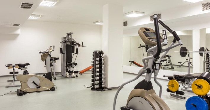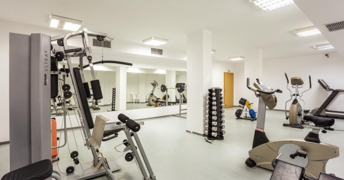 O sală de fitness cu echipamente necesare pentru o gamă variată de exerciții fizice este la dispoziția celor interesați.