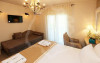 Localizare: Studio-ul Anastasia se afla la 50 m distanta de plaja Golden Beach, cea mai renumita plaja din frumoasa insula Thassos.Facilitati hotel: Cele 14 camere sunt dotate cu pat matrimonial si o single sofa.Dotari camera: AC, TV, chicineta, frigider, cafetiera, fierbator, telefon, uscator de par, fier de calcat, seif, baie cu dus si balcon.
