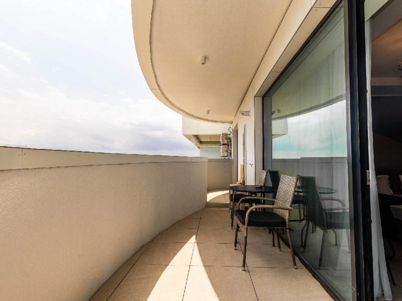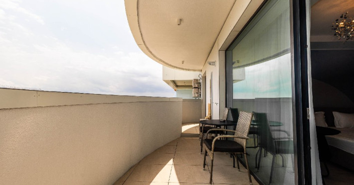 Iar ceea ce face cu adevarat special acest studio este balconul generos, de unde te poti bucura de o vedere spectaculoasa atat catre mare, cat si catre lac. Aflat in primul rand la mare, studioul ofera o panorama superba si acces rapid la plaja a in doar cativa pasi esti cu picioarele in nisip.