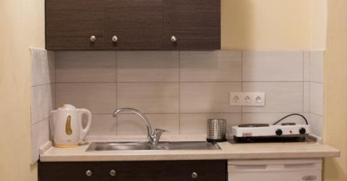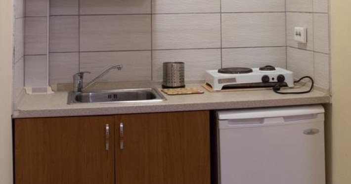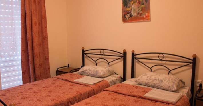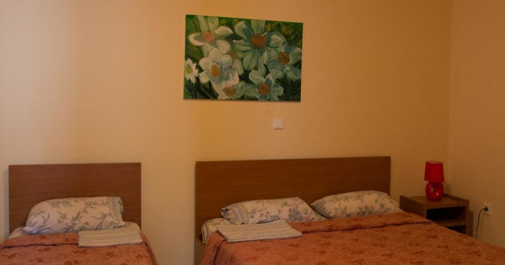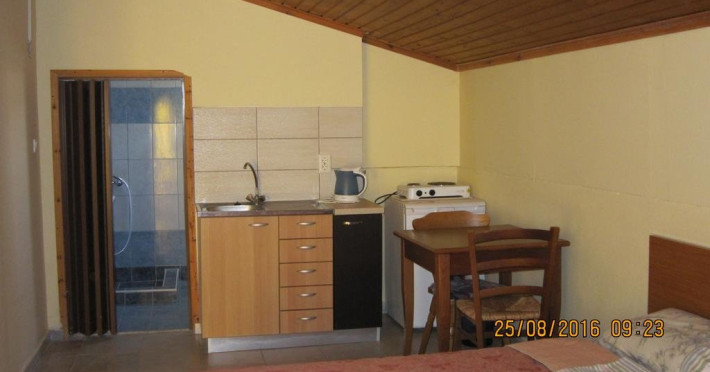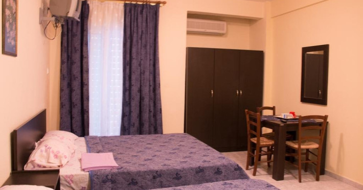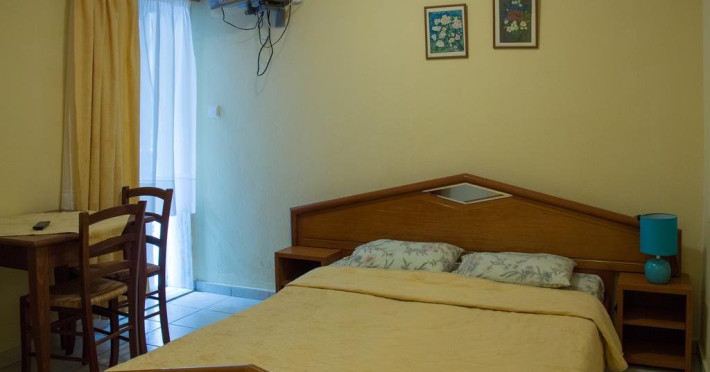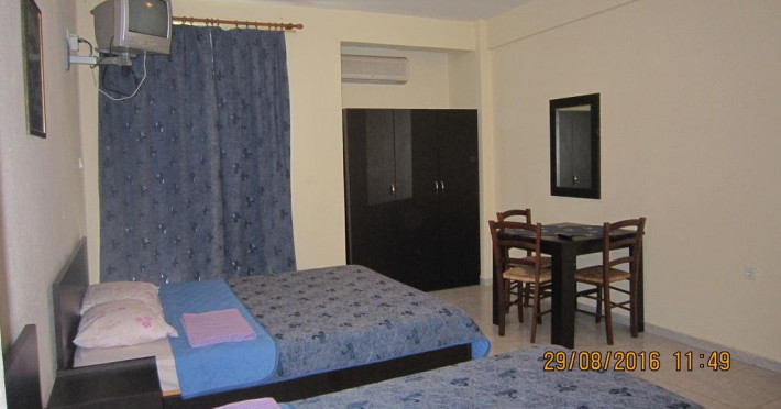 Facilitati camere: 12 studiouri de 2 sau 3 persoane si 2 apartamente (2 camere) de 4-5 persoane dotate cu TV, aer conditionat (5 eur/zi), internet Wi-Fi, chicineta utilata, fierbator, frigider, baie cu dus, balcon.