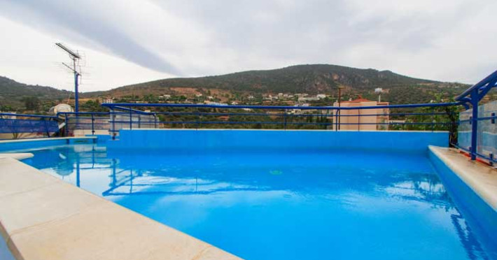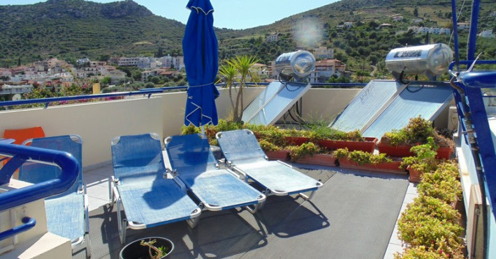 Localizat la cativa pasi distanta de centrul statiunii, la 3 minute de plaja cu nisip, intr-o zona linistita si cu o vedere spectaculoasa catre Golful Argolic.