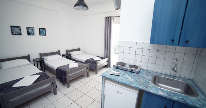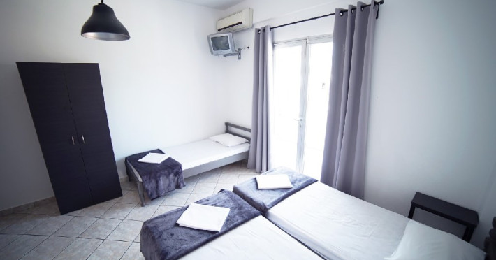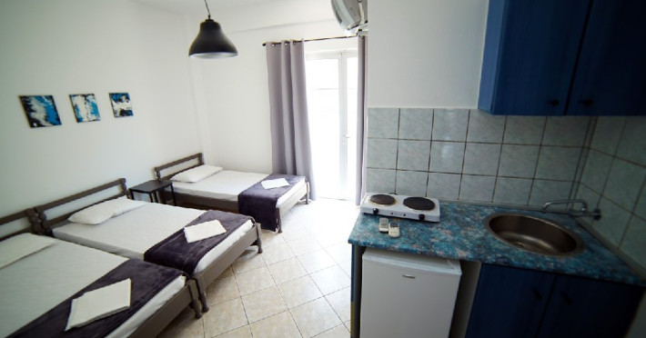 Localizare: Studioul Hermioni Inn este situat la 250 m de centrul si plaja statiunii Paralia Katerini si la 100 m de supermarketul Lidl. Studioul Hermioni Inn este amplasat in imediata apropiere a unui parc si intr-o zona linistita a statiunii.Unitatea de cazare este in regim self catering, ceea ce inseamna ca lenjeria si prosoapele nu se schimba in sejurul de 5-7 nopti cazare.