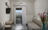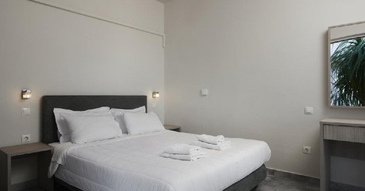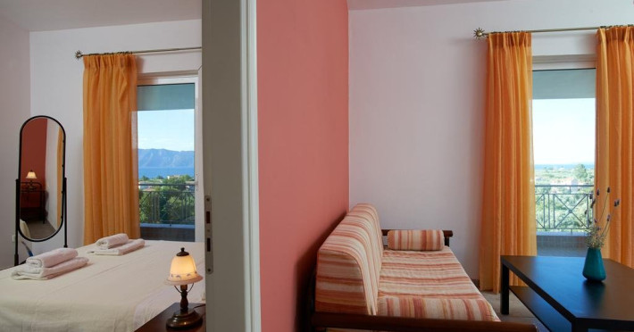 Apartament: dormitor cu pat matrimonial si living cu pat twin si canapea extensibila.