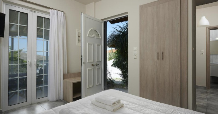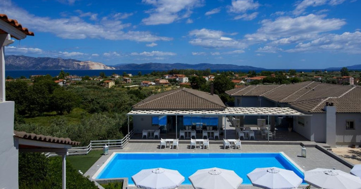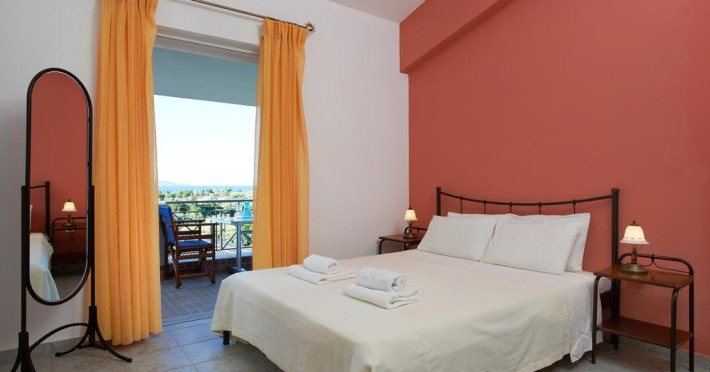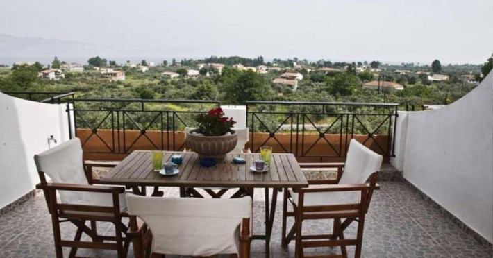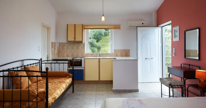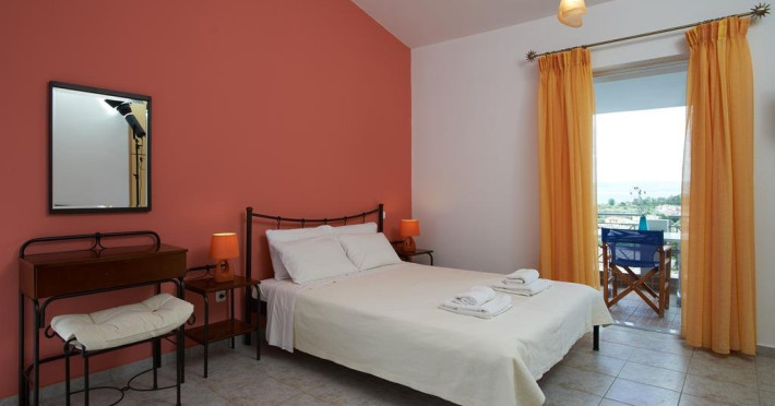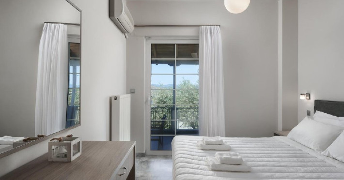 Locatie: Vila Irene este construita pe un deal, inconjurata de plantatii de maslini, la 700 de metri de plaja din Pefki, Evia.Facilitati camere: Vila Irene poate gazdui pana la 42 de persoane in cele 6 studiouri si 6 apartamente.