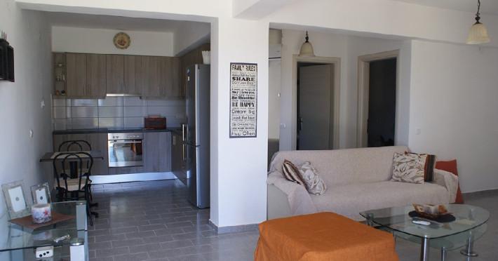Apartamentul: 60 m2: dormitor cu pat matrimonial si living cu canapea extensibila.