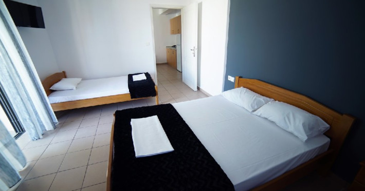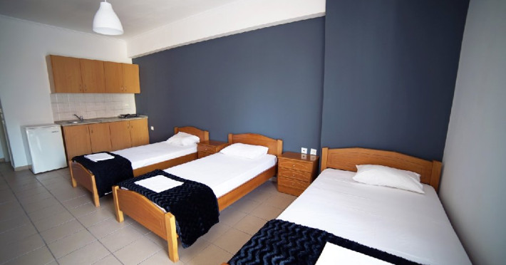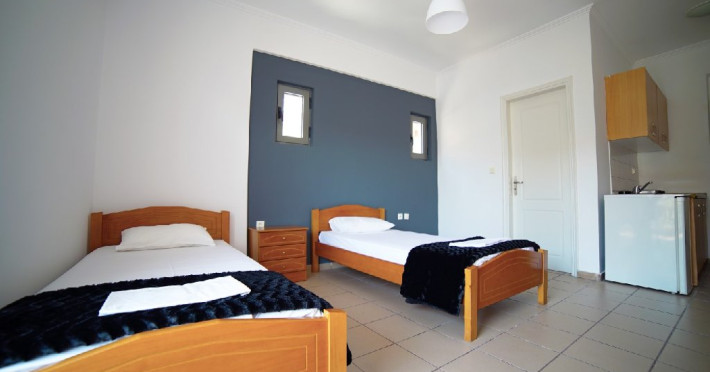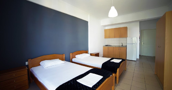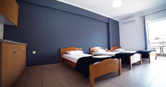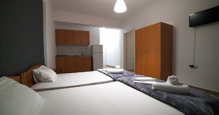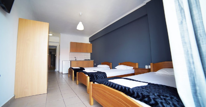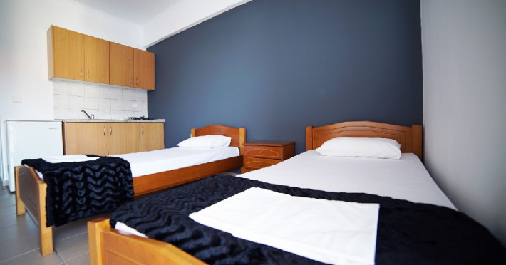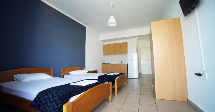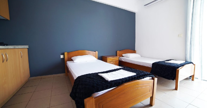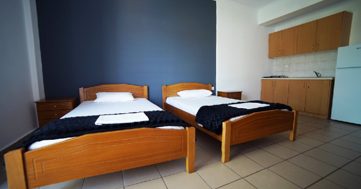 Localizare: Studioul Saffroni Inn este situat la 250 m de centrul si plaja statiunii Paralia Katerini si la 100 m de supermarketul Lidl. Studioul Saffroni Inn este amplasat in imediata apropiere a unui parc si intr-o zona linistita a statiunii.Unitatea de cazare este in regim self catering, ceea ce inseamna ca lenjeria si prosoapele nu se schimba in sejurul de 5-7 nopti cazare.