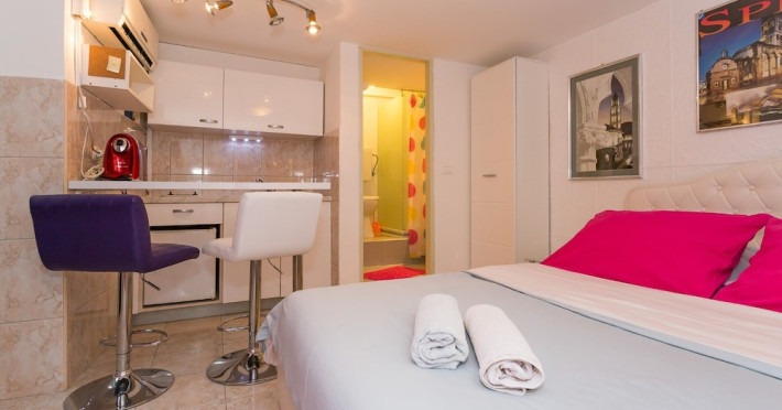 Near Port of Split. Located in Split (Varoš), this apartment is within a 15-minute drive of Kasuni Beach and Bacvice Beach. This apartment is 0.2 mi (0.4 km) from Split Riva and 0.5 mi (0.8 km) from Diocletians Palace. Make yourself comfortable in this air-conditioned apartment, featuring a kitchen with a refrigerator and a stovetop. A 22-inch flat-screen television with cable programming provides entertainment, while complimentary wireless internet access keeps you connected. Conveniences include a desk and a coffee/tea maker, and you can also request a crib/infant bed (complimentary).Datorita dinamicitatii domeniului disponibilitatea ofertelor se modifica de la un moment la altul. De aceea ofertele sunt valabile in limita locurilor disponibile. Agentia nu este responsabila pentru eventualele neconcordante care pot aparea intre informatiile privind tarifele si alte detalii din site si informatiile primite in agentie. In aceste cazuri vor avea prioritate, intotdeauna, informatiile primite in agentie.