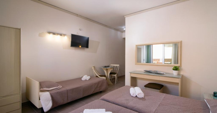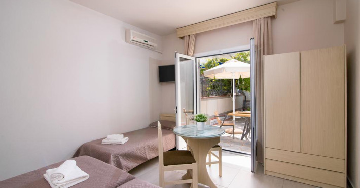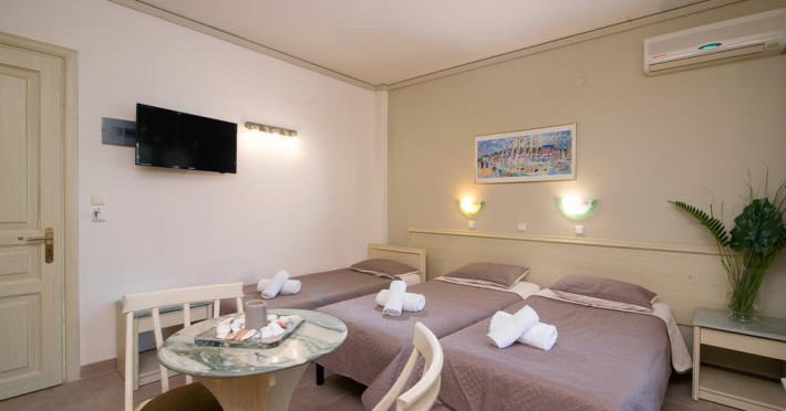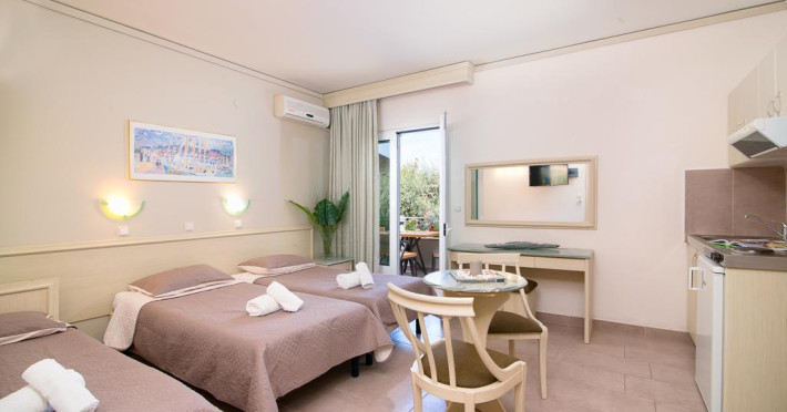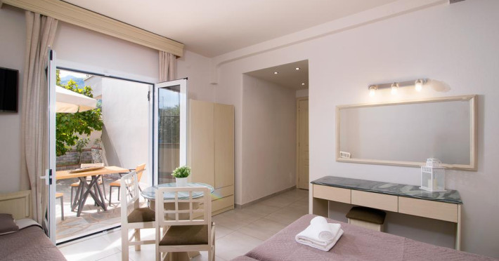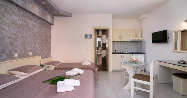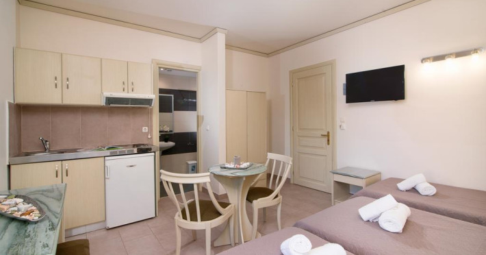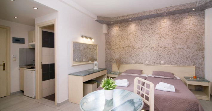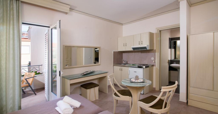 În camere există baie prevăzută cu foehn. Camerele confortabile de la Studiouri Albatros sunt dotate cu pardoseală de gresie/ marmură, aer condiționat și Tv. Fiecare cameră dispune de cană-fierbător. Unele camere au balcon cu vedere la oraș sau la grădină. Oaspeții au acces gratuit la serviciul Wi-fi în camere. Toate camerele spațioase de la Studiouri Albatros au zonă de relaxare cu canapea, ceea ce oferă un plus de confort. Fiecare unitate de cazare include o chicinetă utilată cu frigider și ustensile de bucătărie. Proprietatea oferă camere pentru familie cu o suprafață mai mare și un număr mai mare de paturi față de cele standard. Se pot rezerva de asemenea camere pentru nefumători.