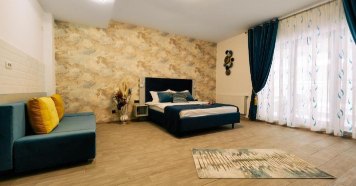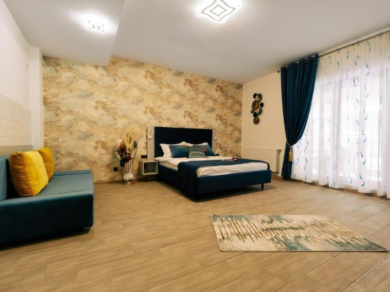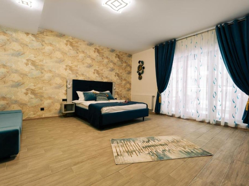Se pot caza maxim 4 persoane. Pat matrimonial 180 x200 cm si canapea extensibila 160x200 cm. Studio 45mp (inclusiv terasa)