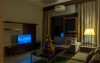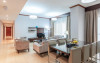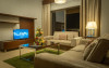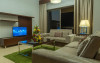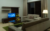 Apartamentele de la SUHA JBR Hotel Apartments au aer aer, TV cu plasmă, cutie de valori digitale și zonă de luat masa.