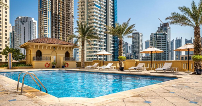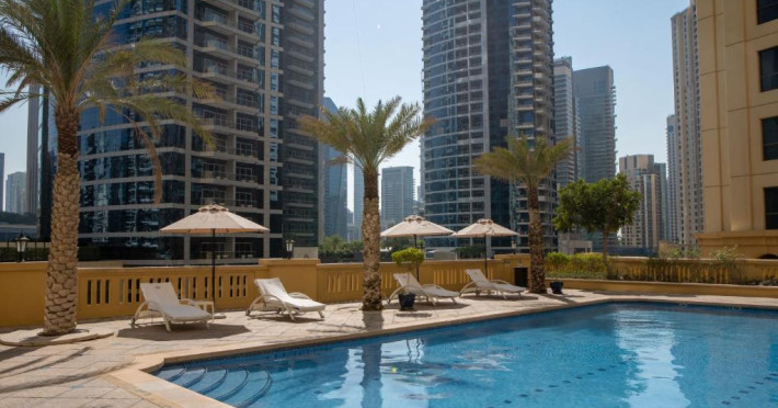 Oaspeții de la Suha JBR pot să se relaxeze in zona piscinei. Proprietatea oferă recepție deschisă non-stop și serviciul de bărbați.