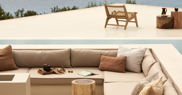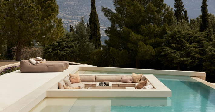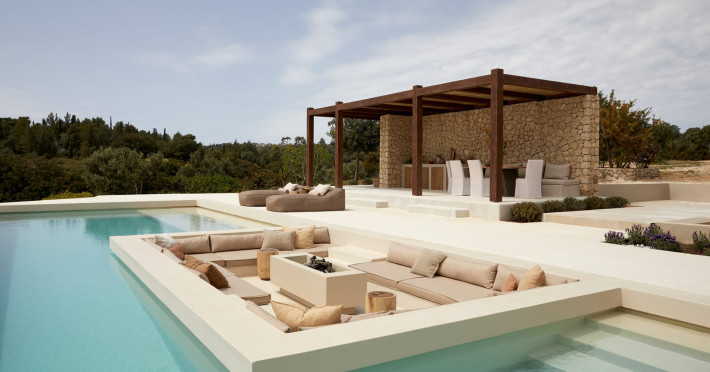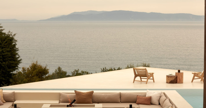 200sqm luxury villa is perched on a hill above Pessada cove, in the south part of Kefalonia island, in the picturesque Pessada village offering privacy and panoramic views of the Ionian Sea and the National Park of Mount Aenos.