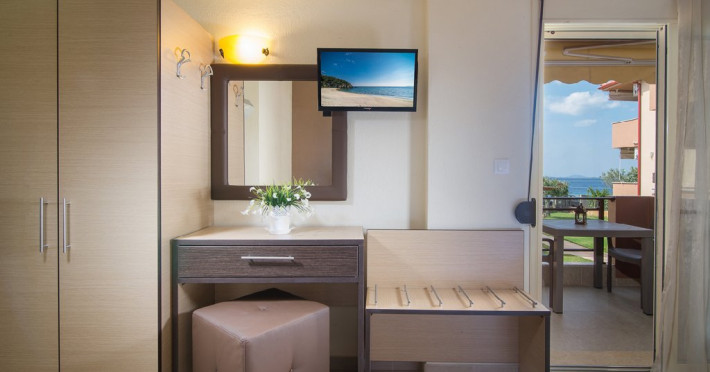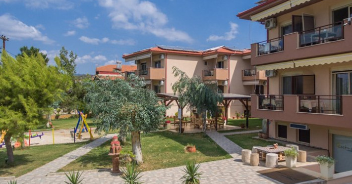 Localizare: Castro Deluxe se afla la 10 m distanta de plaja statiunii Toroni, ce se afla pe bratul Sithonia din Halkidiki.Facilitati camere: Camerele pot acomoda intre 2-4 persoane si ofera o frumoasa vedere la marea Egee.