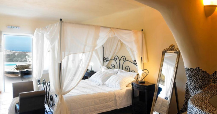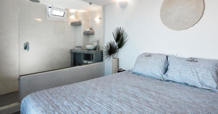 Camerele de la Suites Of The Gods Cave Spa sunt dotate cu aer condiționat, Tv cu canale prin satelit și seif. Fiecare cameră dispune de minibar. Oaspeții pot solicita serviciul de room service pentru a servi masa sau diverse băuturi. În camere există baie cu cadă sau duș, foehn, articole de toaletă gratuite, precum și halate de baie și papuci. Camerele au balcon cu vedere la mare sau la piscină. Curățenia in cameră se face zilnic. Proprietatea oferă camere pentru familie cu o suprafață mai mare și un număr mai mare de paturi față de cele standard.