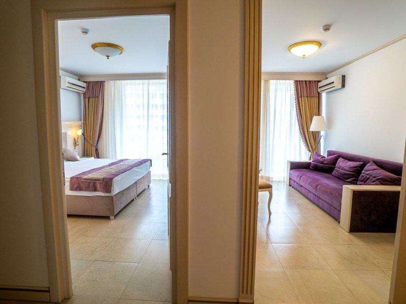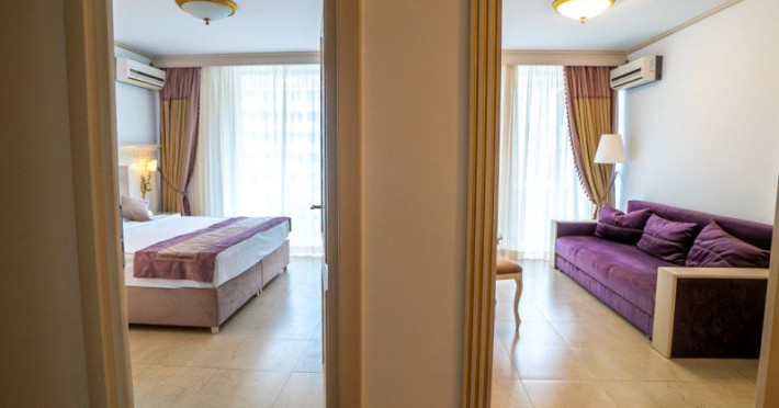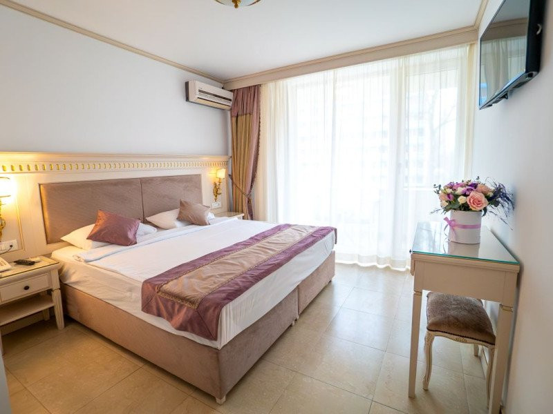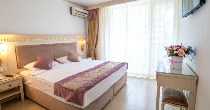 Toate spatiile de cazare au vedere la statiune, hotelul fiind situat perpendicular pe tarm.