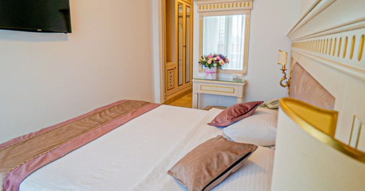 Camerele Duble Standard au o suprafata de 14 mp si sunt dotate cu un pat dublu matrimonial (160x190 cm) si balcon. Capacitatea maxima este de 2 adulti si un copil sub 12 ani, iar spatiul nu permite instalarea unui pat suplimentar.