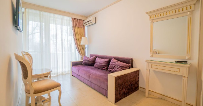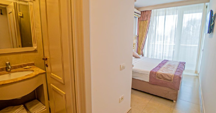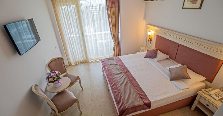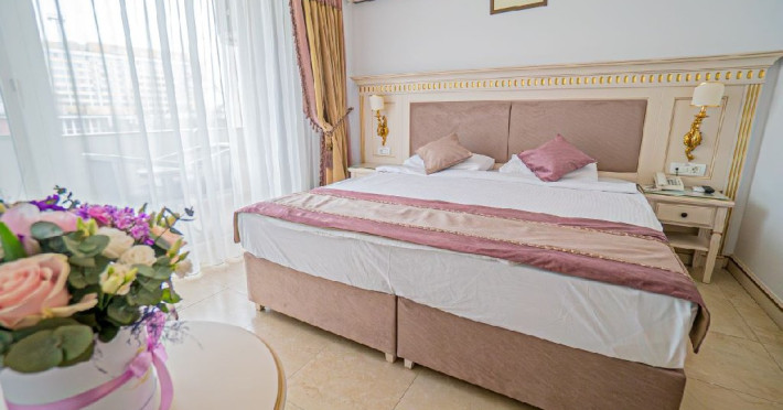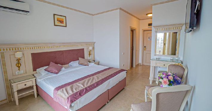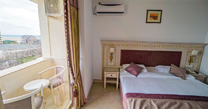 Toate spatiile de cazare au vedere la statiune, hotelul fiind situat perpendicular pe tarm.