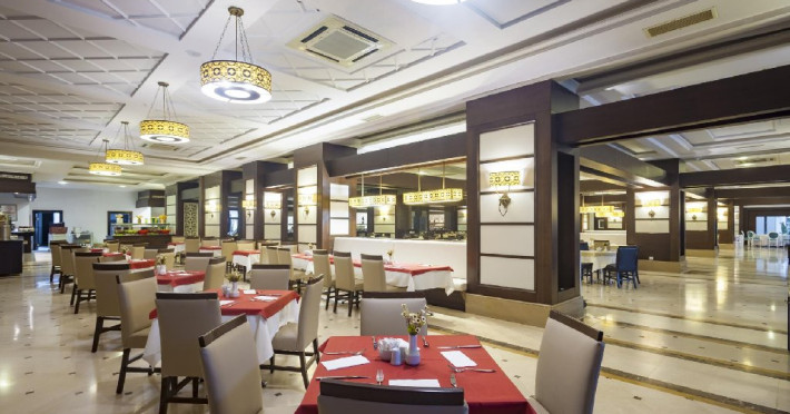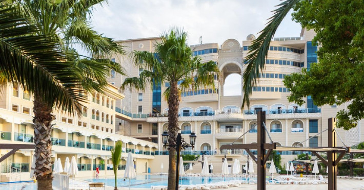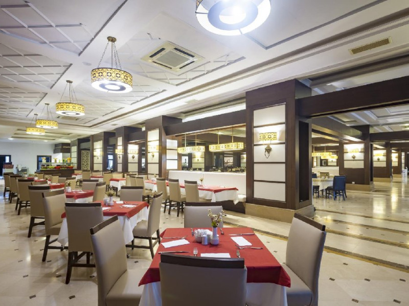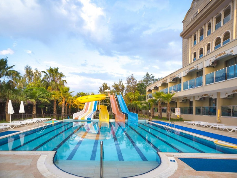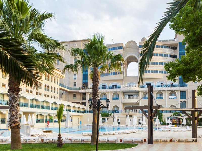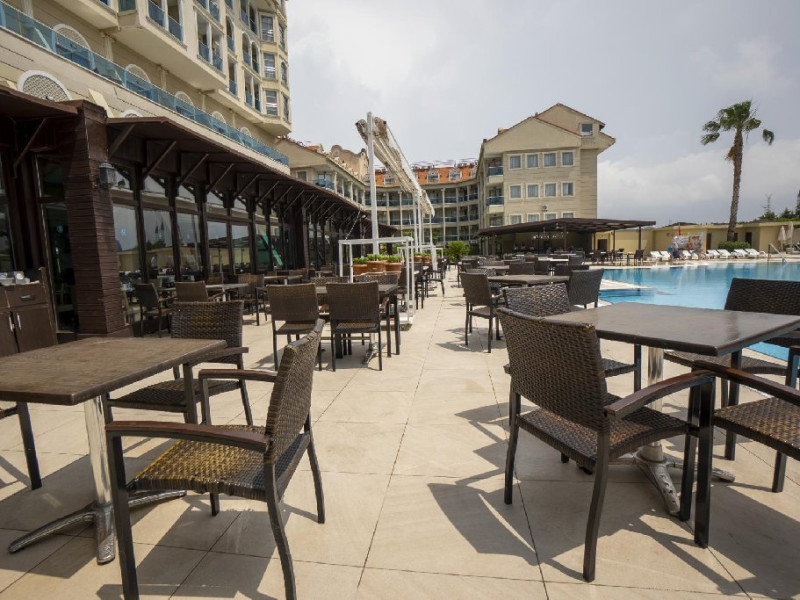 Hotelul pune la dispozitia oaspetilor: restaurant principal, 3 restaurante a la carte, sultan bar, lobby bar, bar la piscina, bar pe plaja, snack bar pe plaja, 2 piscine exterioare cu sectiune pentru copii, piscina interioara, aquapark cu 4 tobogane pentru adulti si 1 tobogan pentru copii, amfiteatru cu spectacole in fiecare seara, disco, centru spa, sala fitness, miniclub (2 -12 ani), loc de joaca, supermarket, sala de bowling, teren de tenis, Wi-Fi gratuit in spatiile comune, volei si darts.