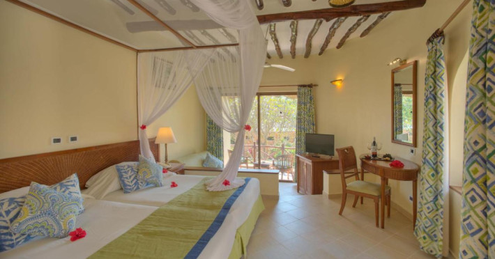 Sultan Sands Island Resort este situat pe plajele largi și strălucitoare din Kiwengwa, pe coasta de est a insulei Zanzibar. Sultan Sands este o locatie cu un caracter unic: un amestec inspirat de arhitectură și decor swahili și arabă creează o ambianță relaxată, în timp ce beneficiile și facilitățile de primă clasă asigură confort complet. Camerele spațioase de la Sultan Sands sunt construite în stilul rondavelurilor tradiționale africane, fiecare decorată cu gust, cu mobilier Zanzibarez sculptat manual. Toate camerele sunt orientate spre ocean, unele fiind situate la doar câțiva metri de plajă. Barurile si restaurantele resortului sunt la fel de impresionante, oferind specialități locale delicioase, precum și preferate din Orientul Îndepărtat și din Europa. Sultan Sands împarte o porțiune de plajă de 500 de metri cu proprietatea sa soră - Bluebay Beach Resort & Spa. Oaspeții celor două resorturi împărtășesc, de asemenea, multe facilități, inclusiv faimosul Oasis Spa și One Ocean Dive Centre.Datorita dinamicitatii domeniului disponibilitatea ofertelor se modifica de la un moment la altul. De aceea ofertele sunt valabile in limita locurilor disponibile. Agentia nu este responsabila pentru eventualele neconcordante care pot aparea intre informatiile privind tarifele si alte detalii din site si informatiile primite in agentie. In aceste cazuri vor avea prioritate, intotdeauna, informatiile primite in agentie.