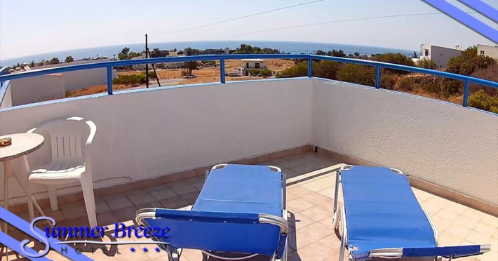 Camerele confortabile de la Summer Breeze au pardoseală de gresie/ marmură, aer condiționat, Tv cu canale prin satelit și seif. Unele camere au balcon cu vedere la mare sau la grădină. În camere există baie prevăzută cu foehn. Fiecare cameră dispune de minibar. Oaspeții pot solicita serviciul de room service pentru a servi masa sau diverse băuturi. Oaspeții au acces gratuit la serviciul Wi-fi în camere. Curățenia in cameră se face zilnic. Fiecare unitate de cazare are frigider. Proprietatea oferă camere pentru familie cu o suprafață mai mare și un număr mai mare de paturi față de cele standard. Se pot rezerva de asemenea camere pentru nefumători.